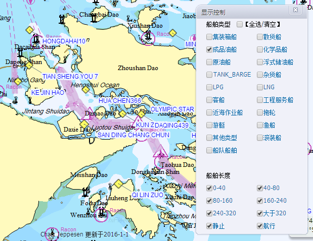 全球海图数据来源于挪威Jeppesen C-Map Professional,每周更新。