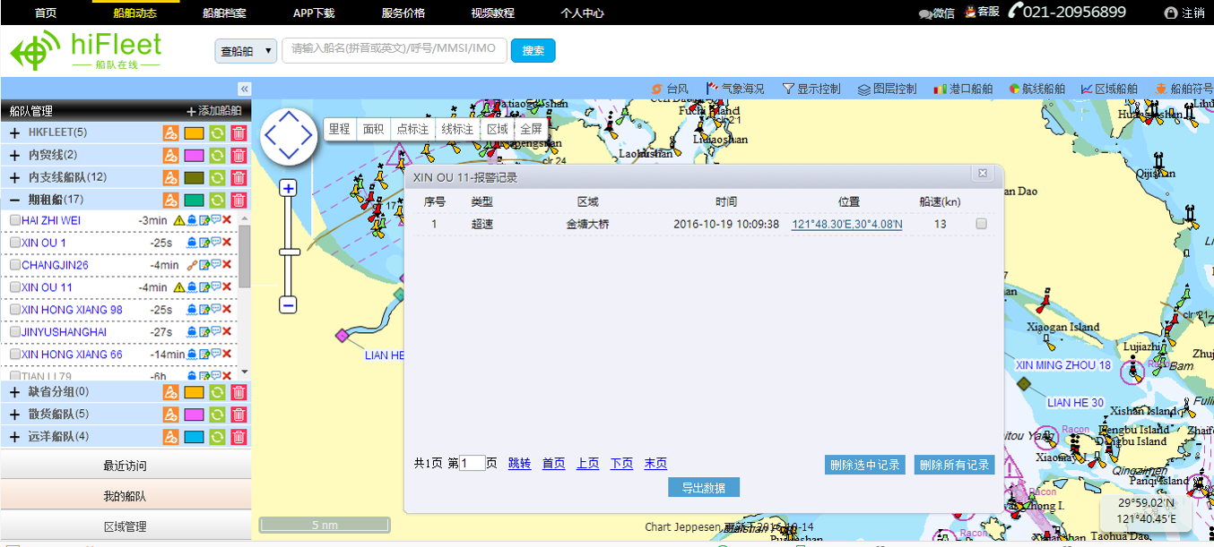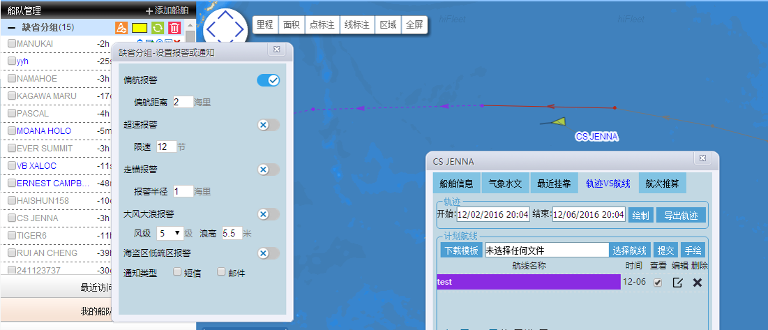 通过对某一船队分组添加报警规则,实现船舶航行监控