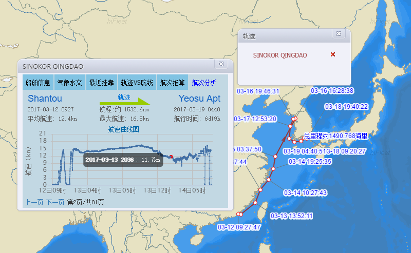 船舶历史船位轨迹间隔最短可达15秒钟,当船舶发生海事时,可为用户提供全面、及时、准确的历史轨迹数据支持。