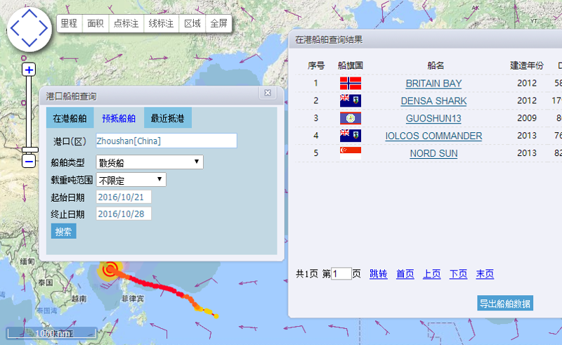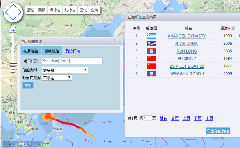 可以按照船舶类型和船舶长度选择显示港口船舶