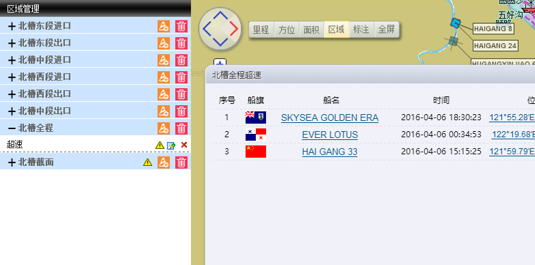 可自行建立区域(比如设置一个雾区)。为该区域配置报警规则(比如一旦船舶进入雾区)。一旦区域內有船舶触发该规则,即记录和短息提醒(比如提醒驾驶人员或海务人员)