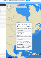 有等压线、风矢量、浪高、流矢量和台风图层。海洋气象预报数据来源于美国NOAA,以6小时间隔预报11天。台风数据来自于美国NOAA、中央气象台、日本气象厅等机构发布的台风预报数据或布告