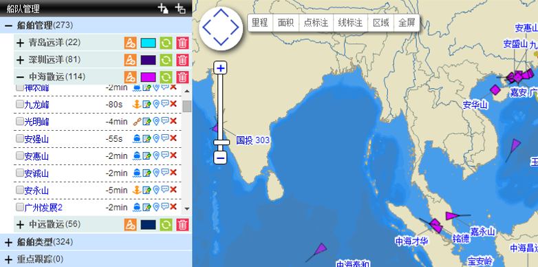 可以按照船舶类型、分公司、重点关注等自定义分组。可查看船队船舶的航行状态,将船舶AIS名称修改为中文名称。在获取到更新船位时,可手工更新船舶船位。可给船舶贴便笺,实现不同用户之间的信息共享